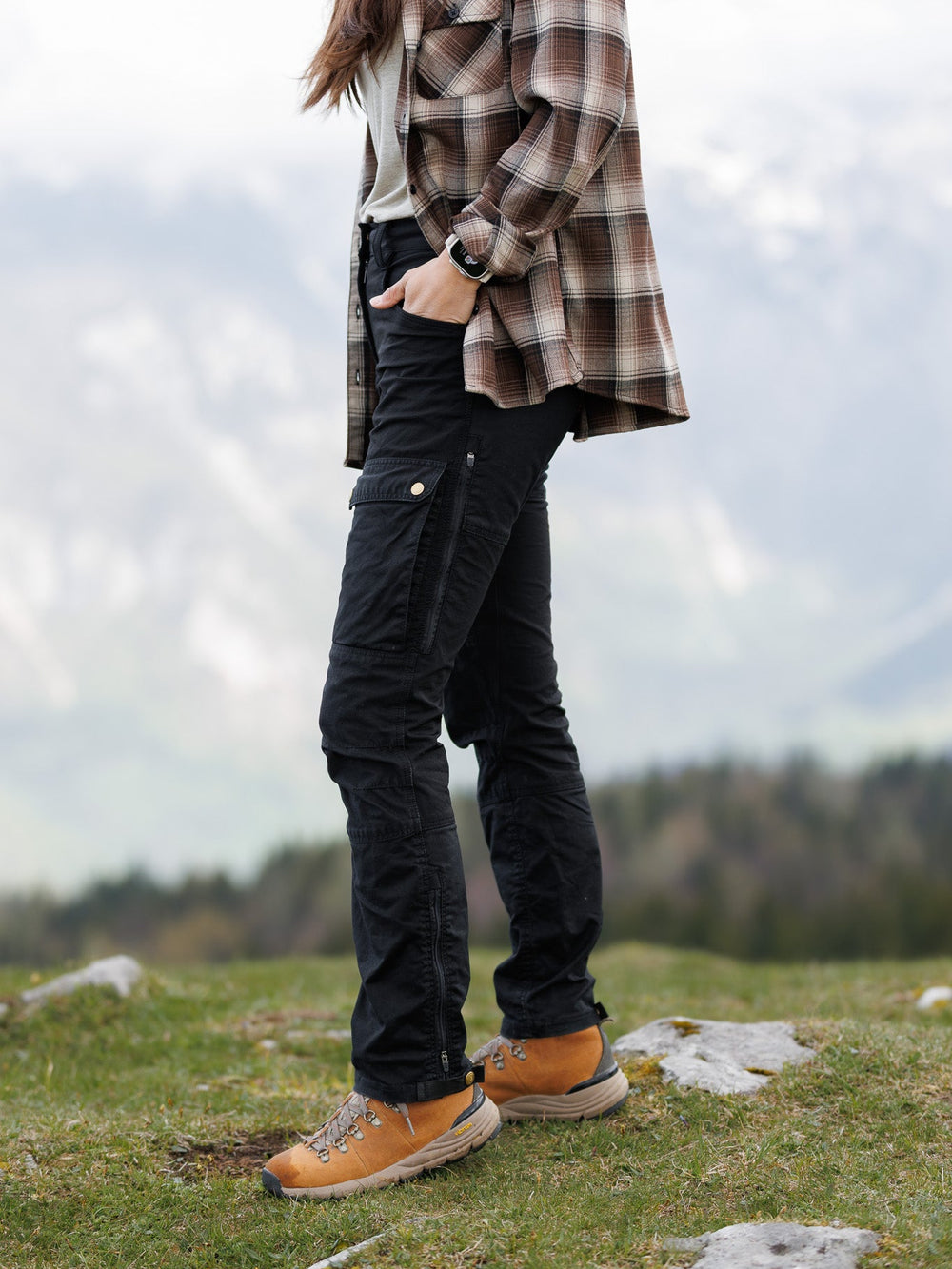 The Explorer Hiking Pants are purpose-built for performance, comfort, and a flattering fit. Designed with the female form in mind, they feature a stretchy, adjustable waistband and a carefully tailored silhouette that moves with you. Reinforced panels in high-wear areas—including a stretchy seat for added flexibility—provide long-lasting durability without compromising comfort. Whether you're hiking in the mountains or exploring closer to home, these pants are your go-to from autumn to spring.