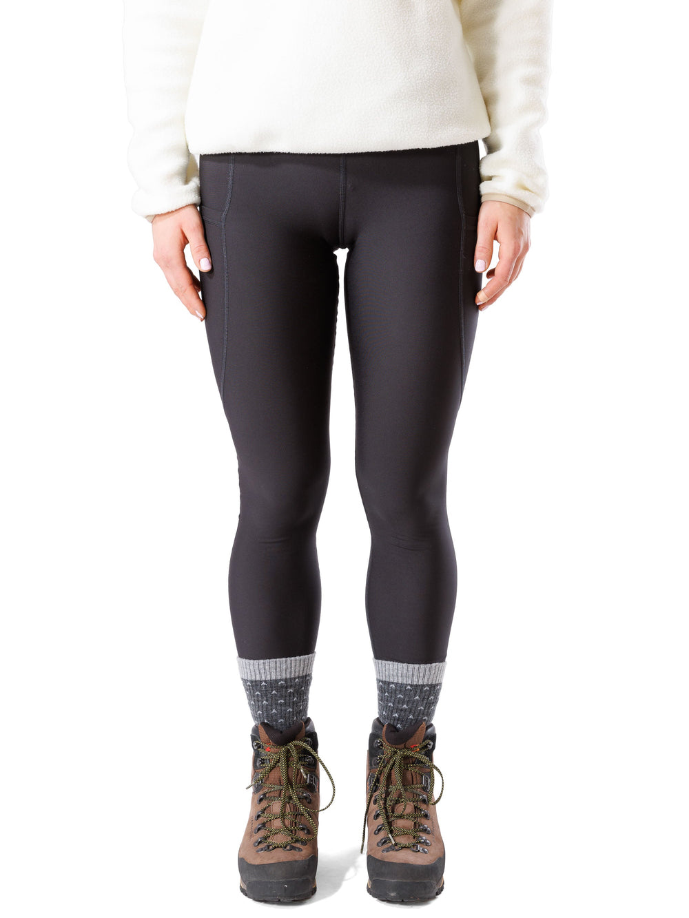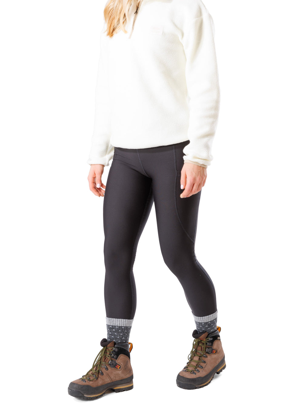 These leggings made from our StayWarm material - compressive, durable and quick drying, but best of all, they are brushed on the inside to keep you warm during your winter adventures. They're coated with a DWR (Durable Water Repellent) finishing, which causes water to bead up and roll off the fabric so you'll stay dry longer. Now, with the addition of two pockets!