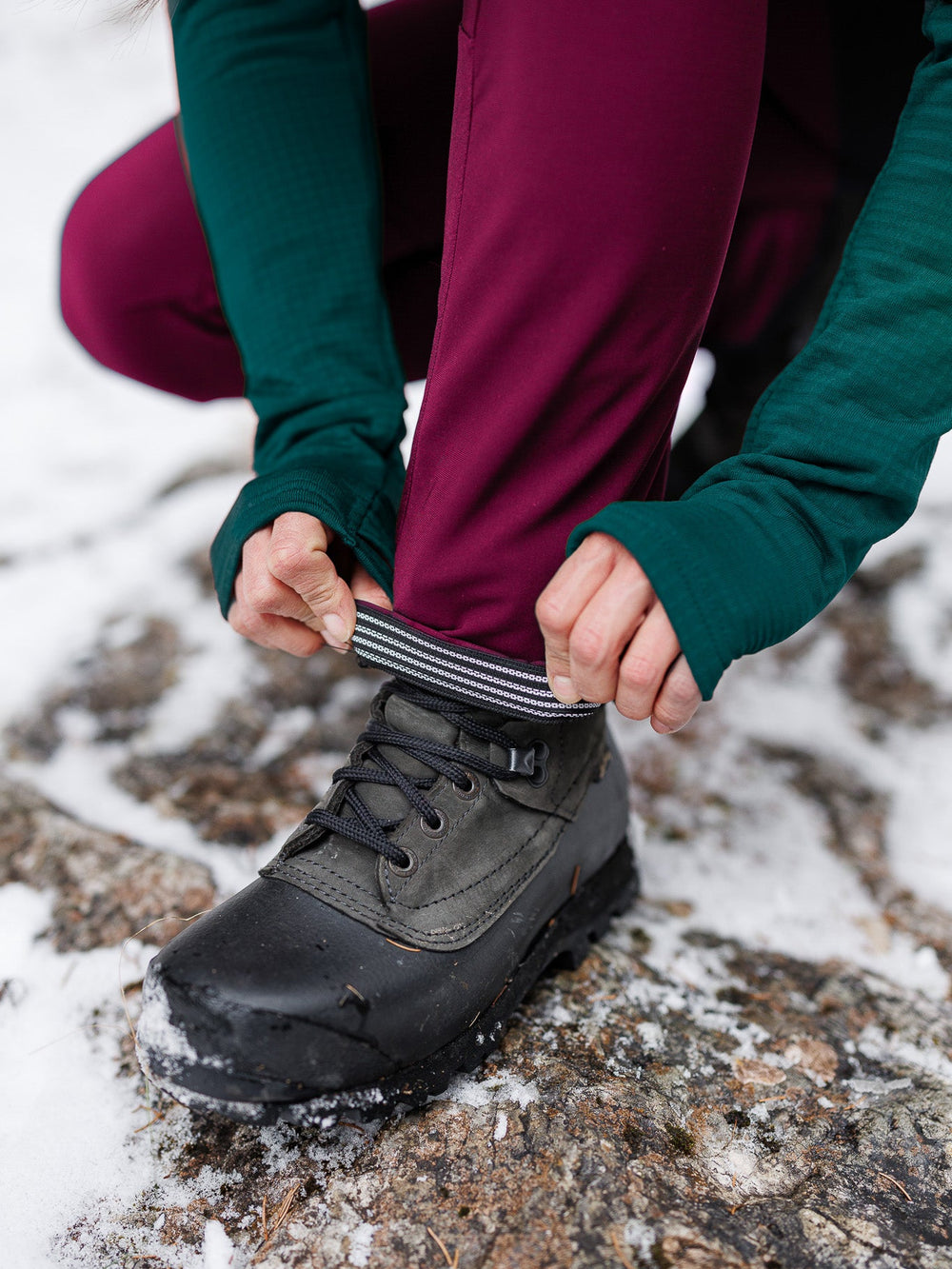 Technical winter pants with the comfort and flattering fit of leggings.