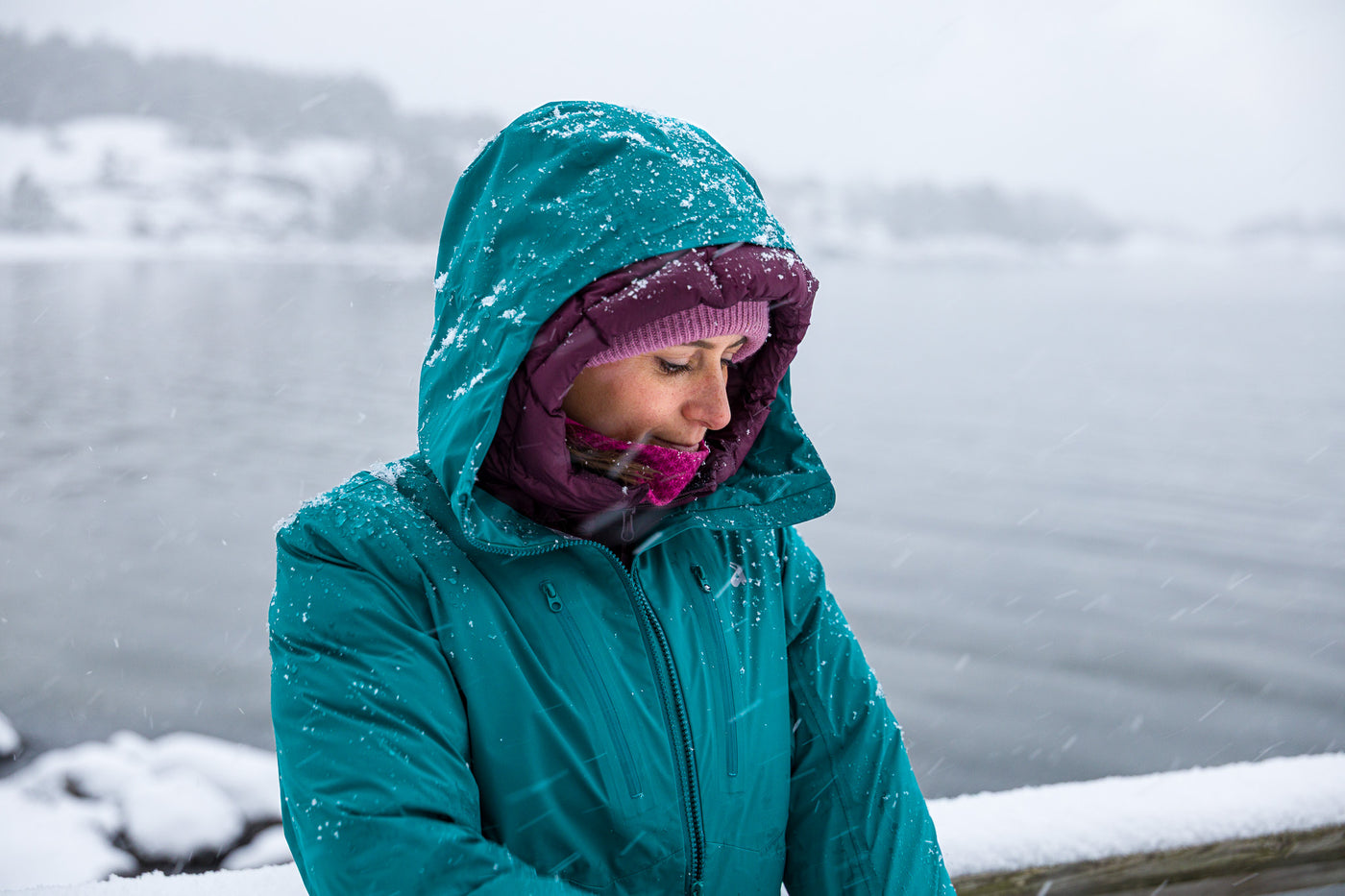 - If you’ll be layering it over thicker pieces (like a heavy down jacket), choose your regular size.