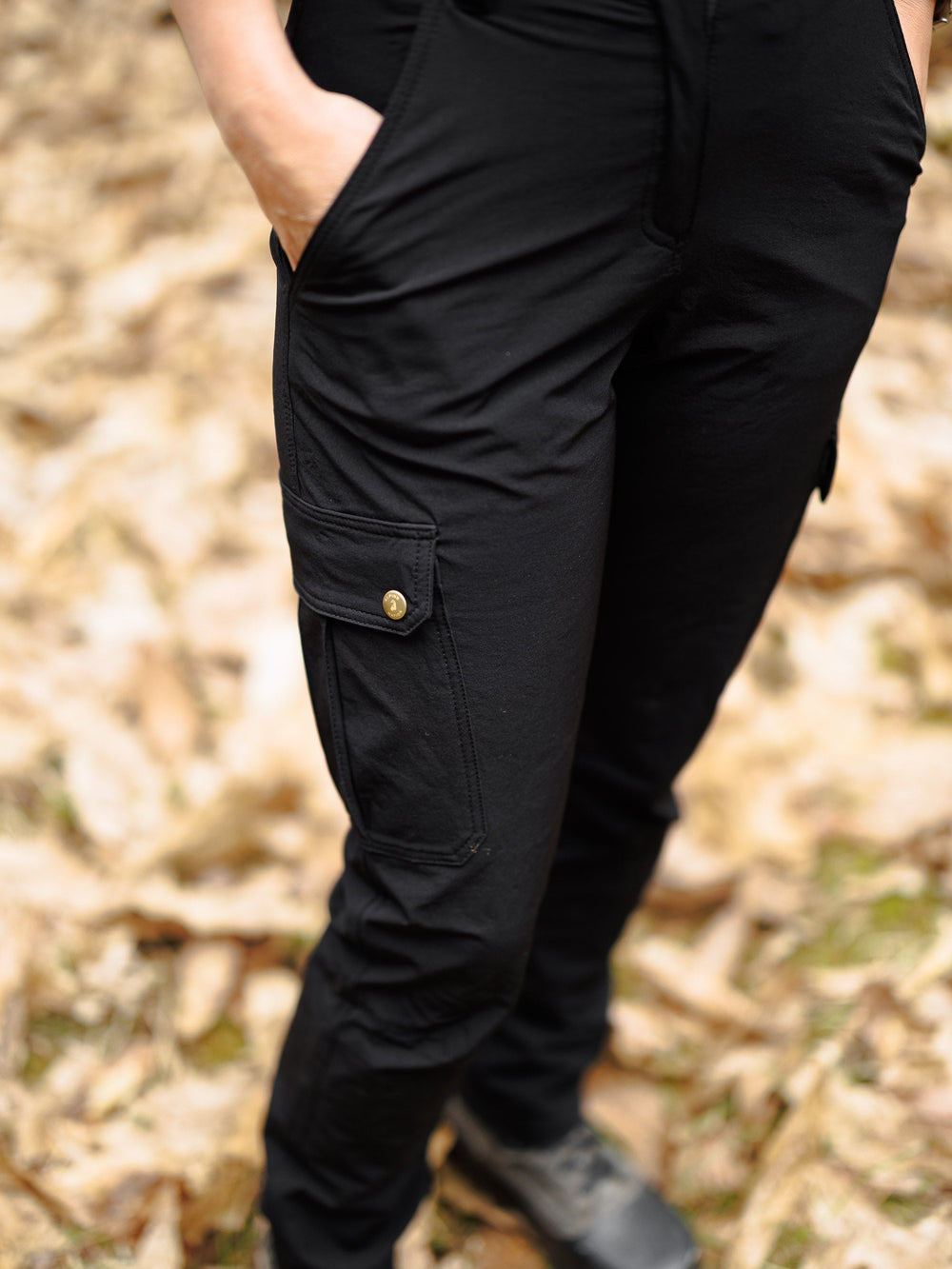 Tough enough for mountain trails, comfortable enough for everyday. The Venture Cargo Pants feature a stretchy waistband with drawstring, a flattering feminine fit, and flexible reinforcements—crafted for outdoor performance with a clean, versatile look that transitions effortlessly from trail to town.