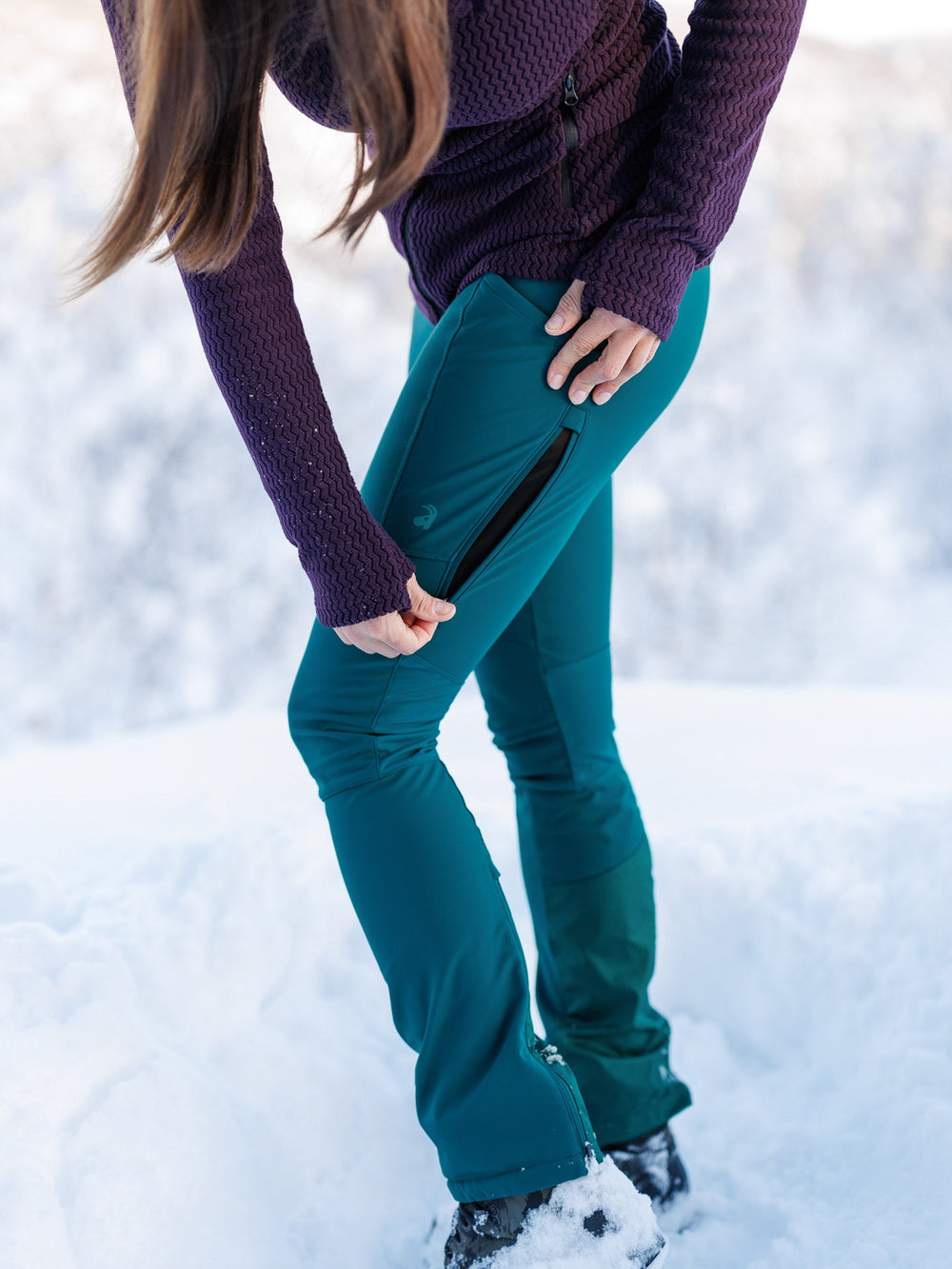 Technical winter pants with the comfort and flattering fit of leggings.